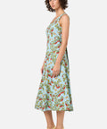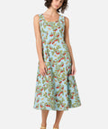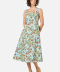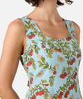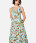 Low scoop neckline midi dress featuring delicious summer vine ripened cherry tomatoes & sweet butterflies