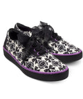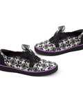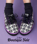 - Striking black-and-white printed fabric upper with bold gothic bow pattern