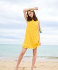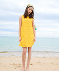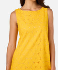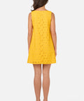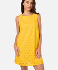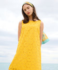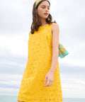 Sleeveless broderie anglaise shift dress featuring a sweet daisy design. A very cute, retro-inspired style, perfect for sunny days.