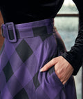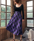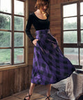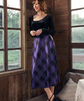 From our ModCloth namesake label comes the Twilight Serenade Midi Dress, a nostalgic ode to vintage charm with a modern twist. Clad in a rich purple check, this knit piece offers a flattering double scoop neck top and a contrasting skirt, accented with a sash waist for a defined silhouette. Medium stretch ensures comfort and flexibility, while a discreet pocket adds a functional touch. Ideal for festive gatherings or cozy winter dates, this dress guarantees a stunning entrance.