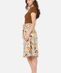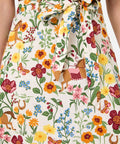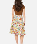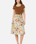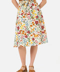 Cream midi skirt printed in a beautiful folksy design, featuring prancing horses in an enchanted flower meadow.