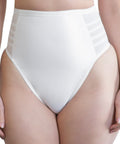 - Unique shaping band technique is used to contour the waist. Four bands on each side of the high waist G-string function as a waist nipper.