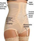 This firm control, high-waisted brief girdle smooths away torso ripples for a slim silhouette. Perfect for everyday wear. Comes with 4 removable elastic garters. Exclusive contour bands for shaping waist, hips, back and derriere. Made of nylon with Invista Lycra spandex for 2-way stretch.