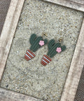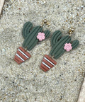 Joshua Tree - Candle Cactus with Pink Flower Earrings: Handmade Polymer Clay