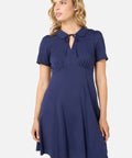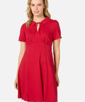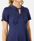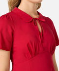 A vintage-inspired mini dress with timeless preppy charm. Featuring a self-embroidered peter pan collar, bow detail, and a flattering empire cut bodice, this sweet silhouette blends nostalgia with everyday wearability.