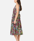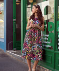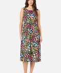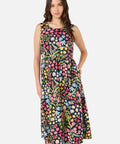 A beautiful navy midi dress featuring a hand-painted print of sweet Australian native flowers, including orchids, wattle, flowering gum, and more. Light, graceful, and effortlessly charming, this sleeveless style is perfect for warm days and easy elegance.