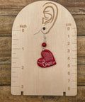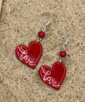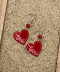 Red Heart Earrings with Love Script