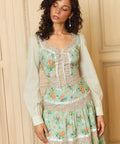 The GUNNE SAX for ModCloth Charlotte Corselette Top in Unicorn print blends Renaissance romance with modern flair. Crafted from 100% cotton, it features a functional corset, long cuffed sleeves, sweetheart neckline, and front tie with ribbon detailing. Trims accentuate the silhouette, while a zipper closure ensures comfort. Timeless charm meets contemporary style in this enchanting top.