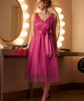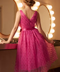 Cue the spotlight. The Memory Lane Fit & Flare Dress from our ModCloth namesake label channels old-Hollywood glamour with a playful twist. Layers of airy dotted tulle create floaty movement, while the romantic V-neckline and cinched waist shape a timeless silhouette. A satin sash ties into a dramatic bow, adding just the right amount of theatrical flair. Finished with a full, twirl-worthy skirt, this dress brings vintage romance, modern confidence, and unmistakable main-character energy to every entrance.