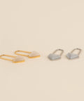 This charm is styled on our Oblong Huggies with Large Paperclip Charm (Silver) and Chunky Scalloped Huggies with Large Paperclip Charm(Gold). Small Paperclip Charm with Oblong Huggie in Gold and Silver.