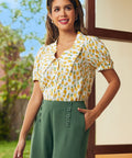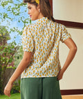 The Petal Picnic Blouse from our ModCloth namesake label brings sunshine-in-a-top energy with a vintage twist, crafted from breathable 100% cotton in a breezy silhouette with an oversized Peter Pan collar and a soft pineapple print for playful, retro-inspired charm. Short puff sleeves with gentle elastic add a classic touch, while the easy button-front design makes styling effortless—tuck it into high-waisted trousers or let it float over your favorite skirt for a look that’s light, cheerful, and just structured enough to make everyday outfits feel a little more special.