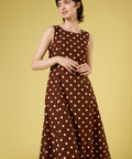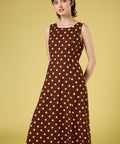 Chocolate brown polka dot midi dress, we're loving our new summer polka dot with posh cream spots