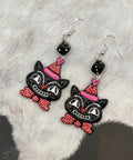Retro Black Cat with Party Hat Earrings