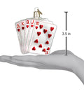 A Royal Flush is a poker hand containing the ace, king, queen and jack of the same suit. A combination of a "flush" (all cards in the same suit), and a "straight" (5 cards in numerical sequence) the Royal Flush is the highest ranking hand in poker. The odds of being dealt a royal flush are 1 in 649,740.