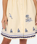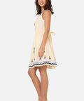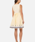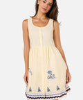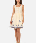Lemon yellow sleeveless summer mini dress, embroidered with gorgeous seaside, penguins, seagulls, sailboats and a lighthouse. Too cute!!