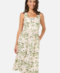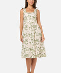 Cream & green square neck mid-length dress, printed in a gorgeous seaside toile style, featuring penguins, seagulls, sailboats and a lighthouse. Too cute!!