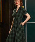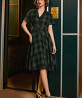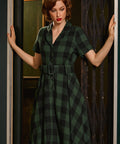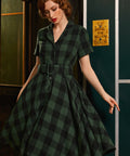 Channel timeless charm with the Rustic Elegance Casual Dress, a vintage-inspired beauty from our ModCloth namesake label that makes effortless sophistication look easy. Crafted from 100% cotton in a deep forest-green and black buffalo check, this dress blends cozy texture with structured tailoring. The notched collar and button-front design lend a touch of mid-century polish, while the matching fabric belt cinches your waist for that classic hourglass silhouette. Side pockets keep things practical, and the short sleeves make it perfect for layering through every season. Whether you’re sipping cider or stepping out for brunch, this dress is pure plaid perfection.