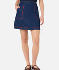 Add a playful, romantic touch to your denim collection with the Sweet Heart Embroidered Denim Skirt. Featuring charming red heart embroidery along the pockets and hemline, this A-line mini pairs perfectly with tops from the Sweet Heart collection for a coordinated, preppy look.