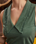 Sweet Stitched Collar V-Neck Top