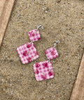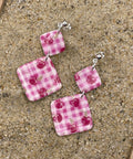 Tutti Frutti - Cherry Gingham Printed Dangle Earrings: Handmade Polymer Clay