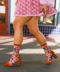 Fall head-over-heels for a little monster love 💖 Our Universal Monsters “You Brighten My Day” Shimmer Sheer Crew Sock is a playful, flirty statement that blends vintage romance with iconic spooky charm. Featuring our favorite monster duo Frankenstein and Bride posed at the ankle with various heart shapes throughout, this sheer style sparkles with subtle shimmer for a look that’s equal parts sweet and bold. Finished with a red heel, toe and cuff for the sweetest addition to your Valentine’s Day look. Because love never goes out of style—and neither do monsters. 🖤✨