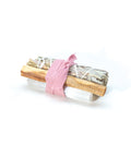 • Holy palo santo wood from South America for sealing in good energies and welcoming positivity. Our palo santo is fair- trade, supports reforestation, and is only harvested from naturally fallen branches in Ecuador.