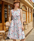 Introducing our Winter Cheer Vintage Dress. This dress boasts a fun and playful print featuring gnomes, sleds, ice skates, mittens, and reindeer. It's a whimsical and festive choice for your winter wardrobe. Spread the joy of the season with this unique and charming piece!