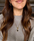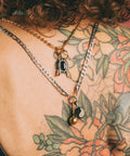 This charm is styled on our Ball Chain Necklace (Gold) and Snake Chain Necklace (Silver).
