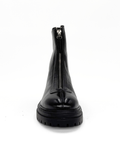 The most epic leather booties to add to your closet. The front zipper detail gives easy access and a unique look to a basic black ankle boot.
