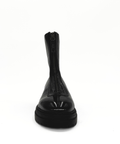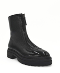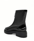 The most epic patent leather booties to add to your closet. The front zipper detail gives easy access and a unique look to a basic black ankle boot.